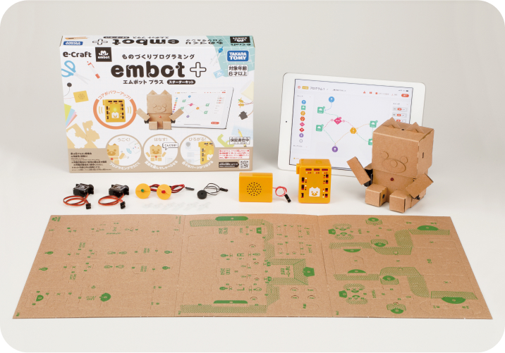 embotは、ダンボールと電子工作パーツを用いてロボットを組み立てることで、電子工作やものづくりの基礎を学ぶことができます。